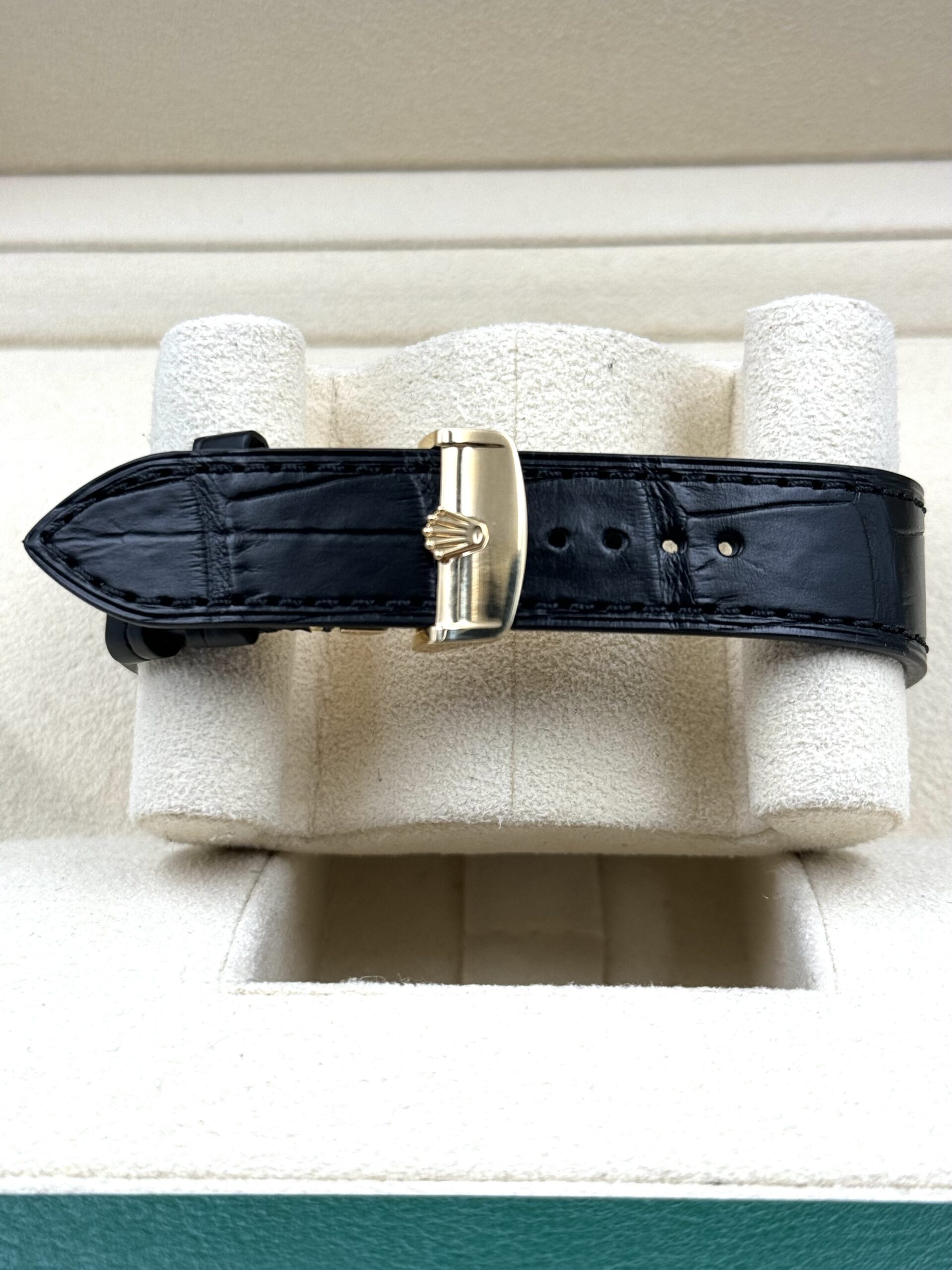 The Rolex Perpetual 1908 Ref. 52508 with a black dial is a testament to Rolex’s commitment to understated elegance and refined horology. This timepiece embodies the brand’s pursuit of perfection, offering a classic aesthetic with contemporary precision.
