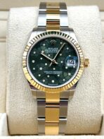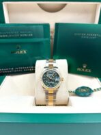 Introducing the Rolex Datejust 31 278273 (Year: 2023) – a testament to timeless design and precision. This piece features a green dial, two tone yellow gold/stainless steel bracelet, and 31 mm steel case, making it a statement piece that effortlessly captures attention.