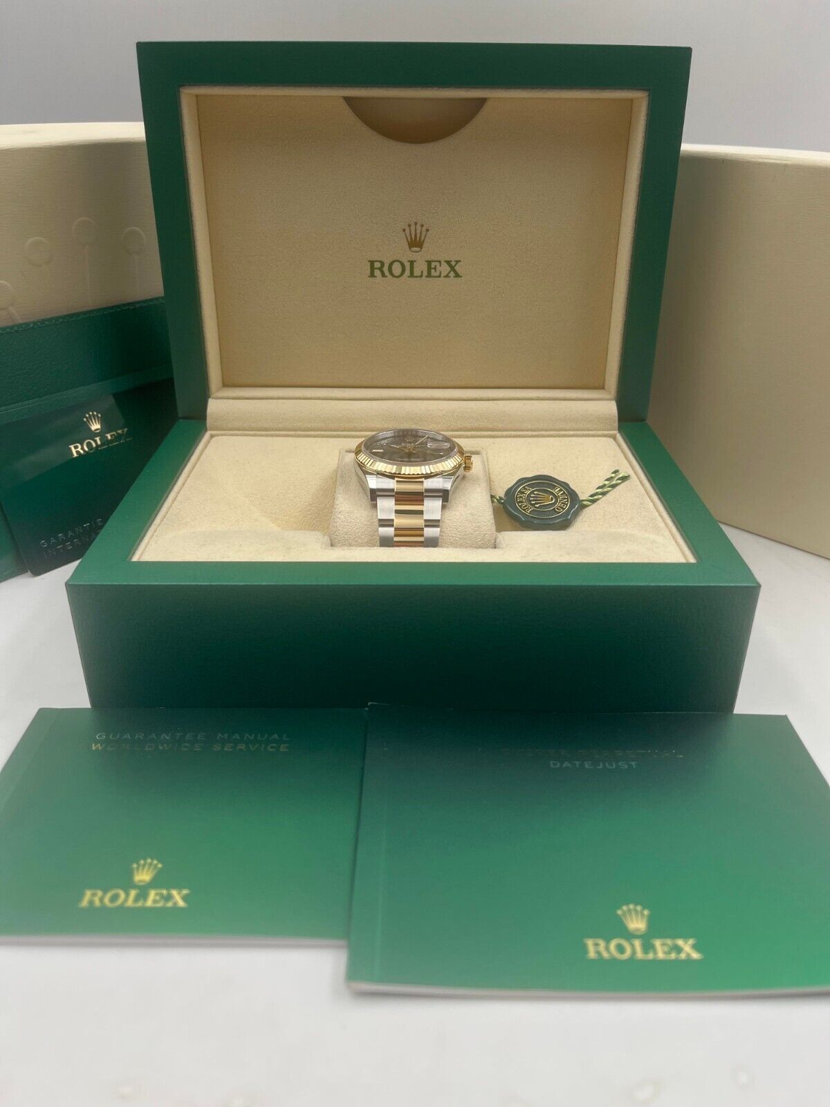 Introducing the Rolex Datejust 36 126233 (Year: 2023) – a testament to timeless design and precision. This piece features a grey dial, two tone yellow gold/stainless steel bracelet, and 36 mm steel case, making it a statement piece that effortlessly captures attention.