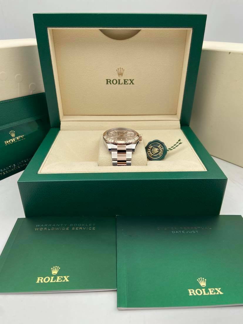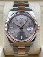 Introducing the Rolex Datejust 41 126331 (Year: 2024) – a testament to timeless design and precision. This piece features a gold dial, two tone rose gold/stainless steel bracelet, and 41 mm steel case, making it a statement piece that effortlessly captures attention.