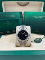 Introducing the Rolex Datejust 41 126334 (Year: 2024) – a testament to timeless design and precision. This piece features a black dial, stainless steel, and 41 mm steel case, making it a statement piece that effortlessly captures attention.
