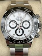 Introducing the Rolex Daytona 116500LN (Year: 2023) – a testament to timeless design and precision. This piece features a white dial, steel bracelet, and 40 mm steel case, making it a statement piece that effortlessly captures attention.