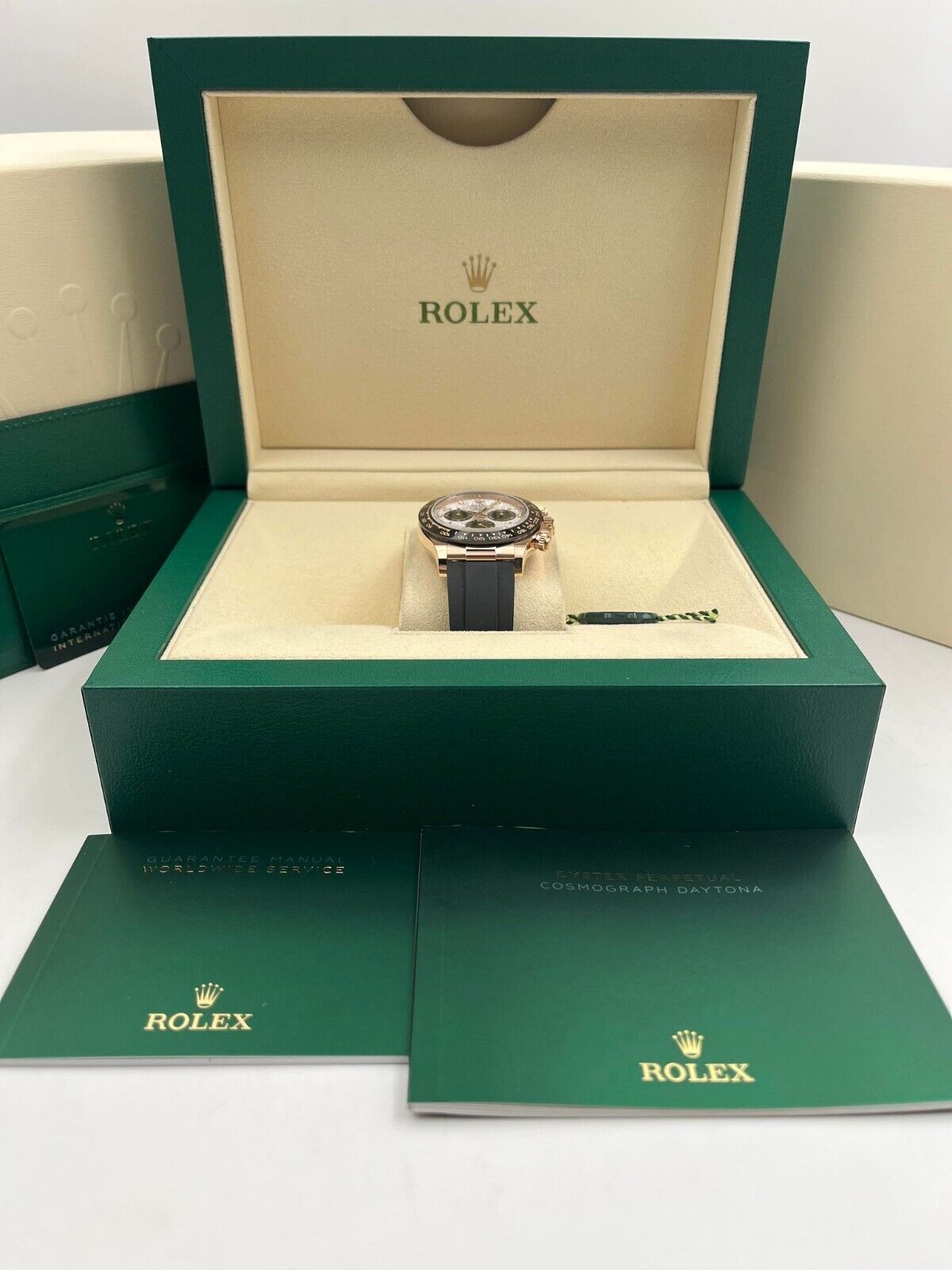 Introducing the Rolex Daytona 116515LN (Year: 2023) – a testament to timeless design and precision. This piece features a silver dial, rubber bracelet, and 40 mm rose gold case, making it a statement piece that effortlessly captures attention.