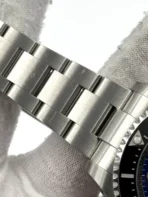 The sleek black dial provides excellent legibility, featuring luminous hour markers and Rolex’s signature Mercedes hands. The blue GMT hand, coupled with the bezel, allows seamless tracking of an additional time zone, ideal for frequent travelers. The date window at 3 o’clock, magnified by Rolex’s Cyclops lens, enhances functionality without disrupting the dial’s clean design.